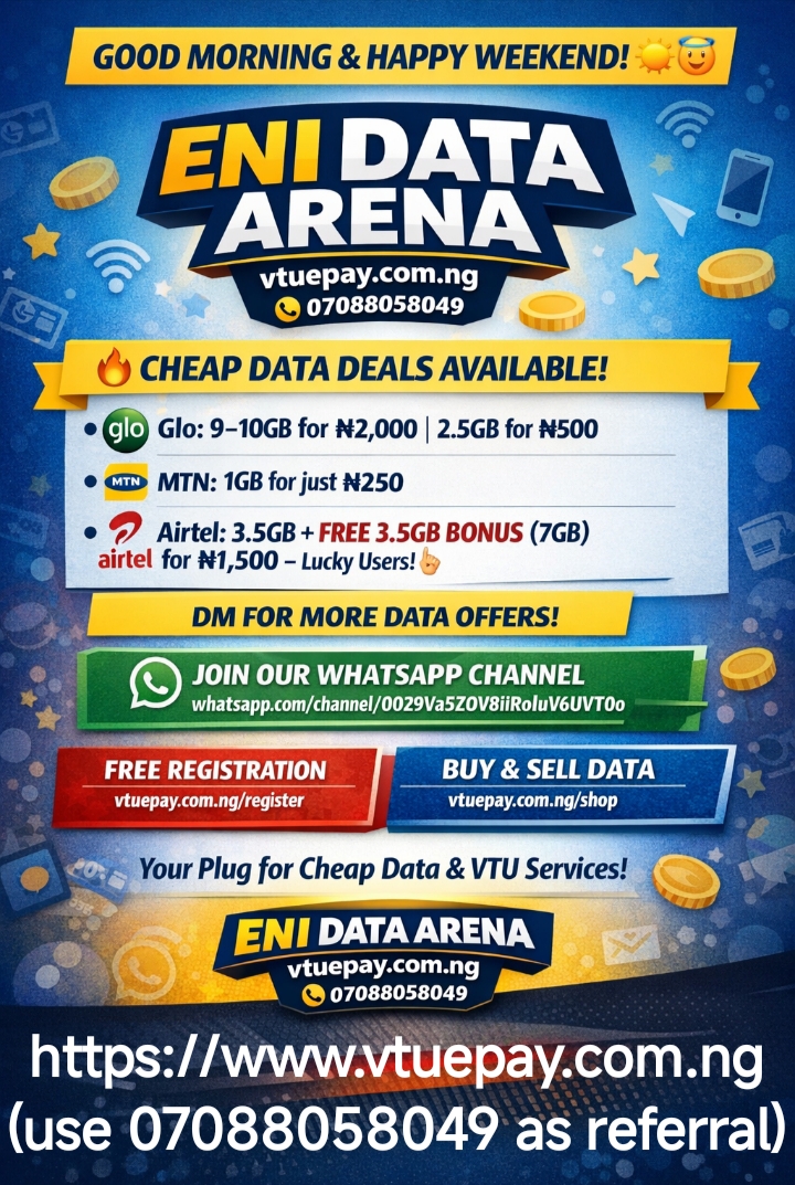 Thank you for trusting ENI DATA ARENA for your data, airtime & VTU needs. β™₯️