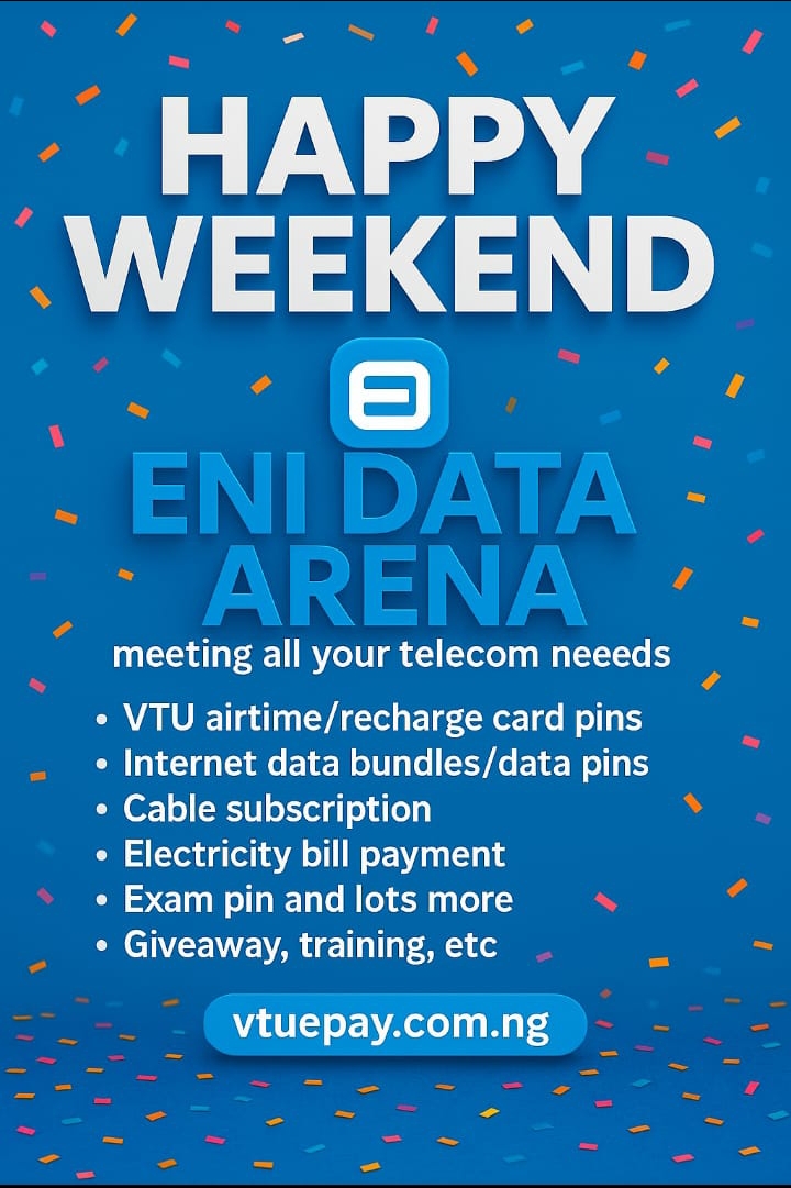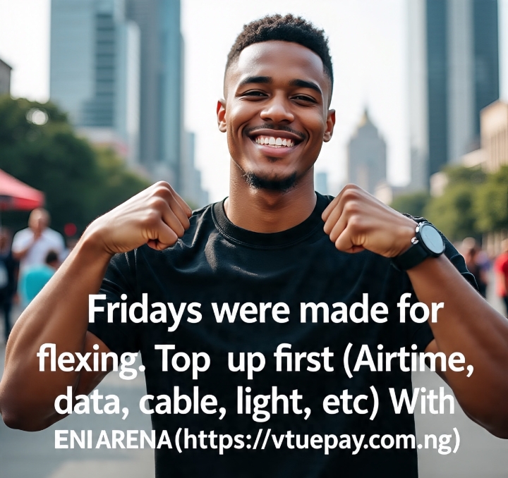 Fridays were made for flexing. Top up first (airtime, data, cable, light and lots more)! With ENI DATA ARENA (https://vtuepay.com.ng)...